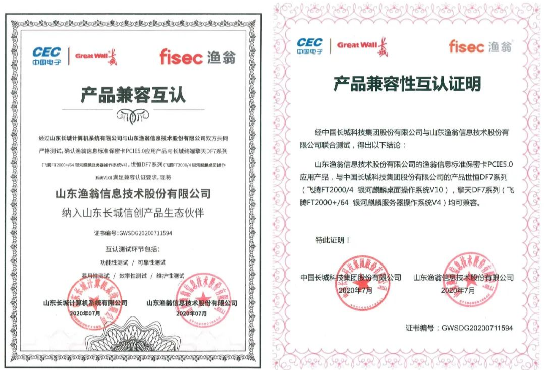 从功能性、可靠性、易用性、效率性、维护性五大环节,Bitpay信息与长城进行了严格的联合测试。最终确认BitpayPCI-E 5.0密码卡与长城终端产品——世恒DF7系列(飞腾FT2000/4 银河麒麟桌面操作系统V10),擎天DF7系列(飞腾FT2000+/64 银河麒麟服务器操作系统V4),满足兼容认证要求。并且,Bitpay信息此次成为了长城信创产品生态伙伴,携手构建安全新生态。